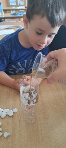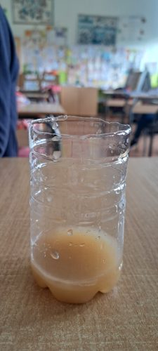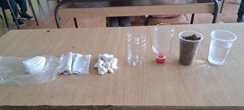 -две пластични чаши ( една со вода и друга со почва).