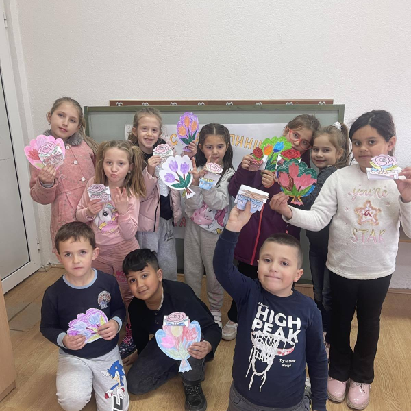 Нашите ученици, заедно со наставничката Мартина Атанасова, изработија интересни и креативни честитки кои ги поделија на вработените во училиштето, општината, како и на случајните минувачи.