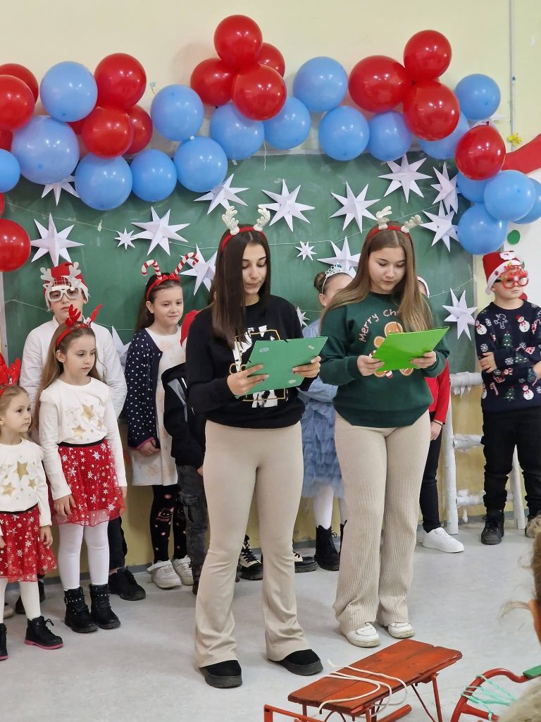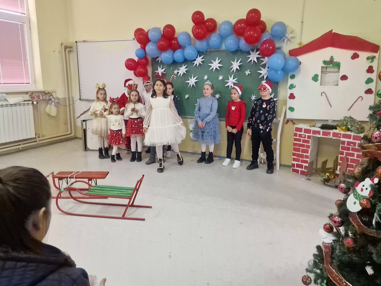 Posted in Настани Преку Новогодишни песни, рецитал и дијалози учениците од I-IX одд. од ПУ Крупиште изразија желби за среќни празници и успешна престојна година декември 29, 2025