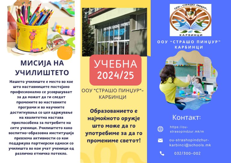 Известување до сите родители и првачињата во учебната 2024- 2025 год.