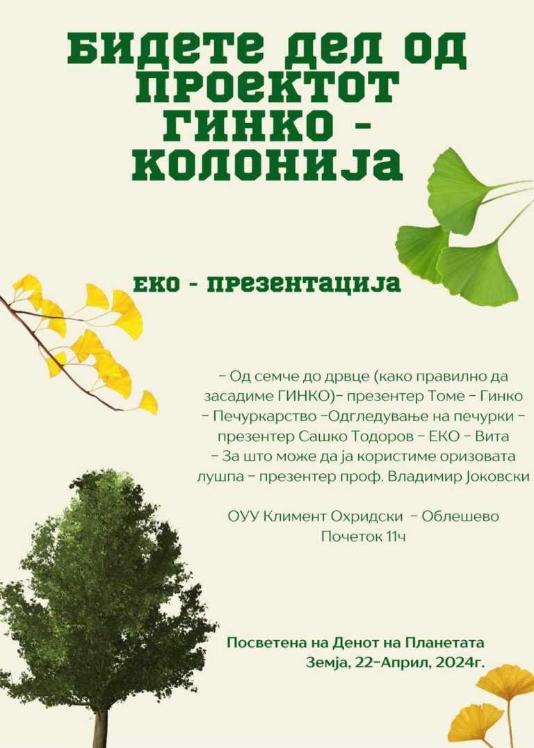 Во склоп на секцијата „Млади Германисти“, наставникот Габриела Даскалова Милојевиќ со учениците Стефан Стоилков 9-1 одд и Стефанија Јанчева 9-2 одд изработија презентација за Денот на Планетата Земја на тема:…